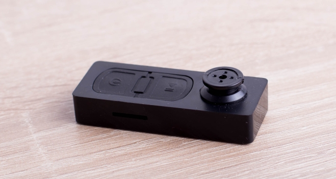 Miniaturowa kamera imituje typowy guzik od koszuli. Istnieje możliwość podłączenia kamery typu pinhole lub założenia obiektywu imitującego śrubkę. Rejestrator można z łatwością ukryć w kieszeni lub innym miejscu. Urządzenie cechuje prostota obsługi oraz bardzo dobrej jakości filmy oraz świetnej jakości dzwięk. Czas pracy i nagrań urządzenia jest zależny od pojemności dysku i stanu baterii i wynosi około 3 godzin. Zebrany materiał można z łatwością przerzucić do komputera.