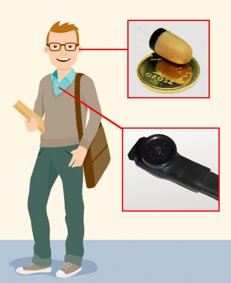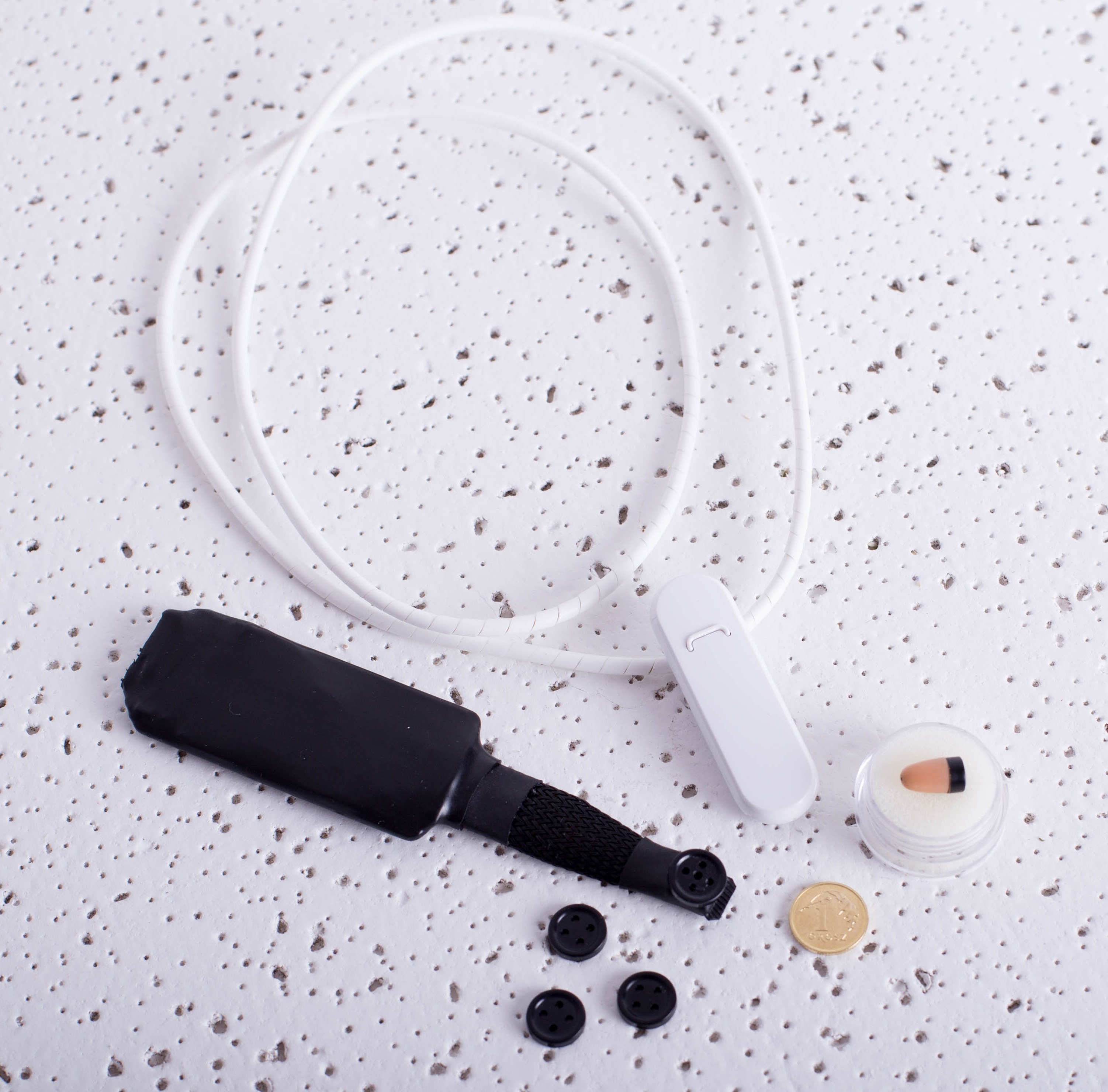 Mikrosłuchawka jest bezprzewodowa i kompletnie niewidoczna. Posiada mikrofon więc możliwa jest komunikacja w dwie strony.